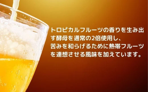 トロピカルフルーツの香りを生み出す酵母を通常の2倍使用し、苦みを和らげるために熱帯フルーツを連想させる風味を加えています。なものです坂出市王越町のブルワリーで、麦芽とお湯を混ぜ、糖分を絞り出して麦汁を作り、麦汁にコーヒー豆を投入し、 約20日間の発酵を経て、瓶詰します。
